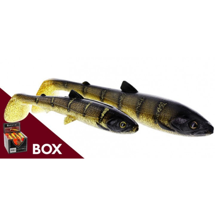 Це одна з приманок, випущених спеціально для лову великої риби. Westin BullTeez вже став наживкою для безлічі хижаків: чи то судак-важковаговик, метрова щука або потужний м'язистий окунь. Це універсальний силікон з реалістичними очима і спокусливими рухами миготливого живота, що виляють зліва направо, навіть на найповільнішій проводці. Широкий спектр різноманітних кольорів та розмірів дозволяє використовувати BullTeez Shadtail при лові різними способами. Друга за розміром версія BullTeez розміром 18cm і вагою 53g, завдяки яким вона ідеально підходить для закидання на велику щуку, але і придонний судак цю акуратну закуску не пропустить.